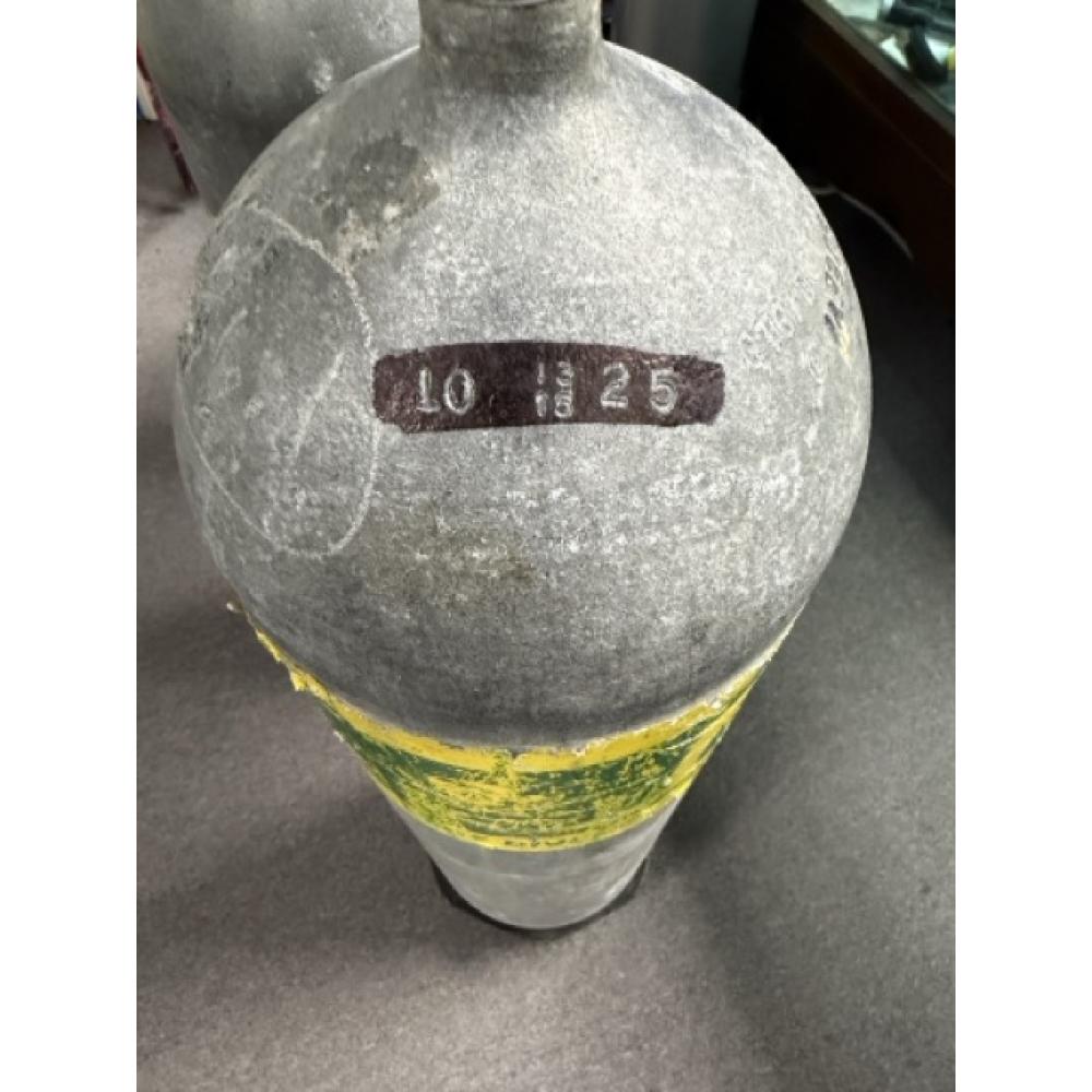 Steel 120 cubic ft galvanized tank. These are 3500 PSI working pressure and DIN only. These CANNOT be converted to pro valves and CANNOT be used with yoke valves. 300BAR DIN valves. Tanks have an October 2025 Hydrostatic Test and VIP date. They are nitrox clean and valves have just been serviced. Tanks will be filled with your choice of hyper pure air or 32% nitrox (if certified). Pickup in shop only. No shipping. First come, first pick of the 3.